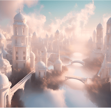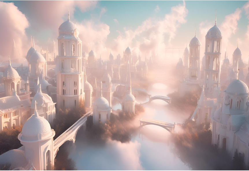 Naïda est entièrement composée de nuages aussi bien au niveau du "sol" que dans la composition des bâtiments de la capitale.